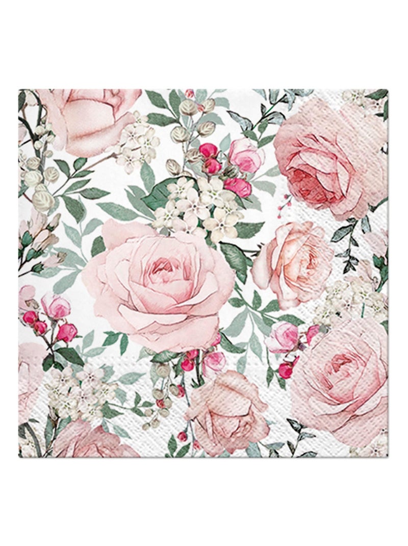 20 serviettes en papier 33 x 33 cm Roses ecloses - Blanc