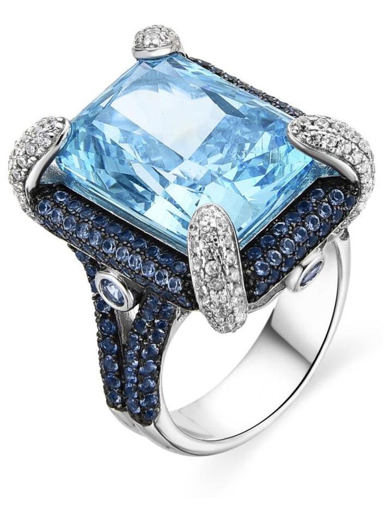 Bague Luxenter en argent 925 et zircon aigue-marine rhodié - Liwi - Bleu