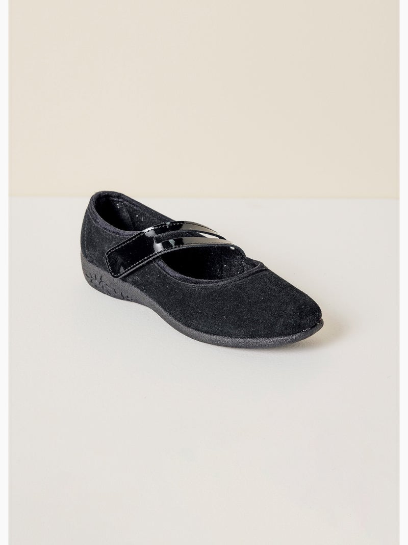 Ballerines cuir velours largeur standard - Noir