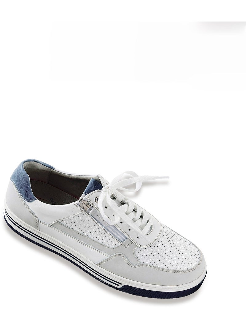 Baskets largeur confort lacées et zippées - Blanc