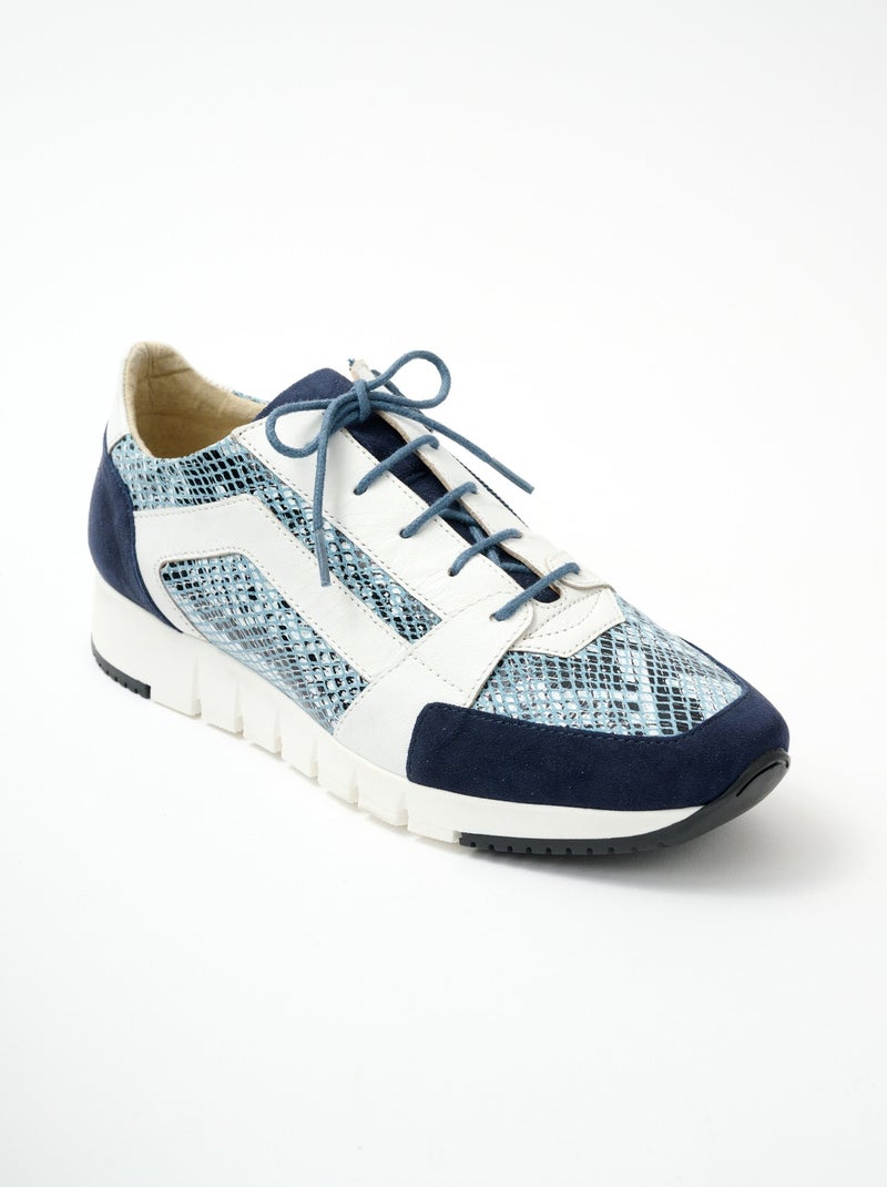 Baskets largeur confort lacées et zippées - Bleu marine