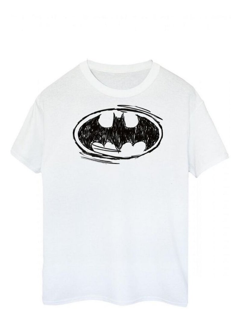 Batman - T-shirt motif/style croquis - Blanc Noir