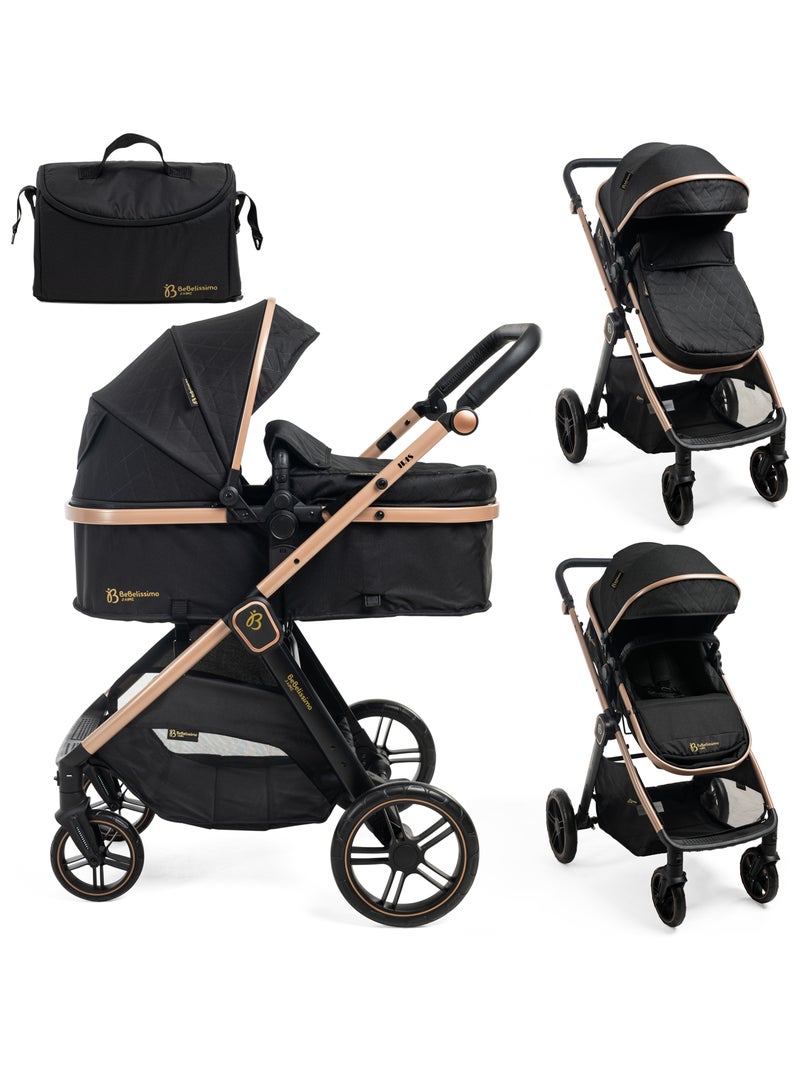 Bebelissimo - Poussette transformable - combinée - 2 en 1 - poids 0-22kg - IRIS - Noir
