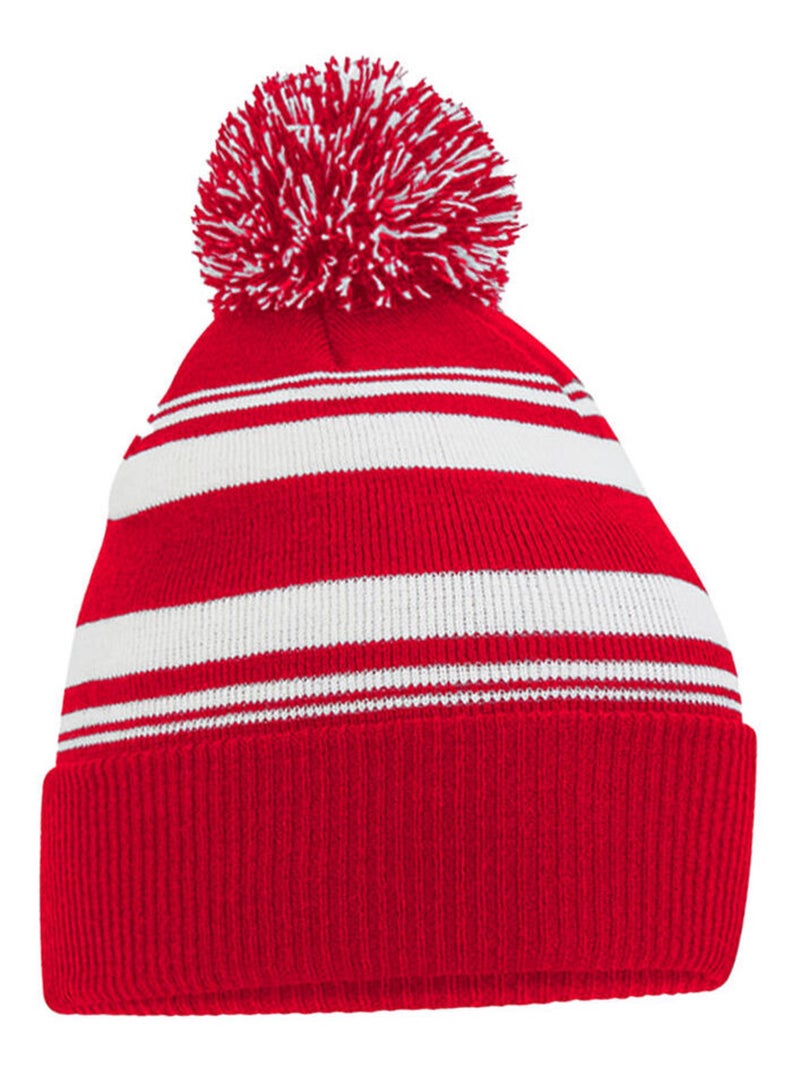 Beechfield - Bonnet motif/style rayé FAN - Rouge grenat