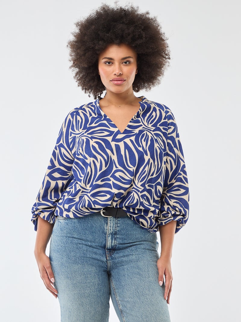 Blouse à col V avec motif allover - Bleu
