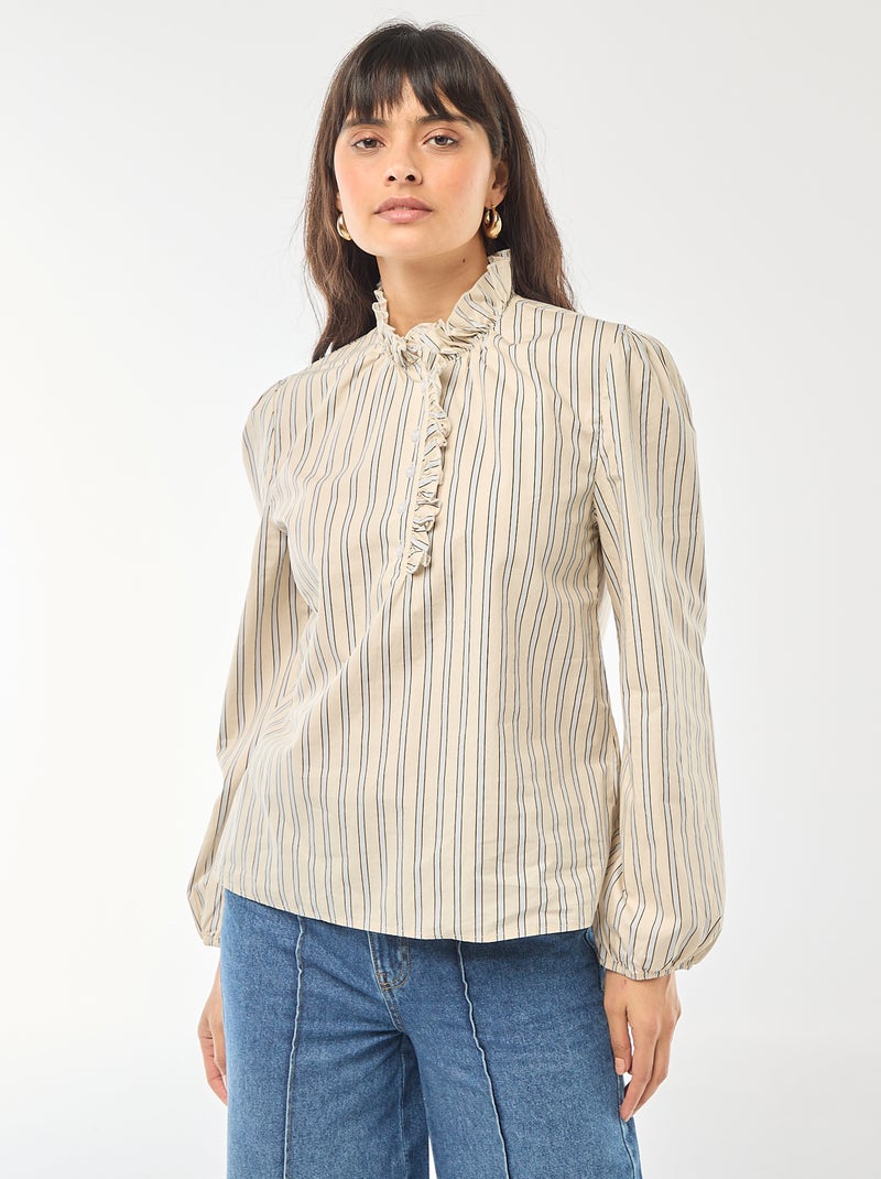 Blouse avec volants au col et à l'ouverture - Blanc