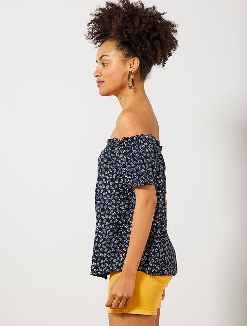 La blouse encolure 'Bardot' a toujours son pouvoir de séduction. Hop, on la décline dans de nouveaux imprimés et à petits prix !