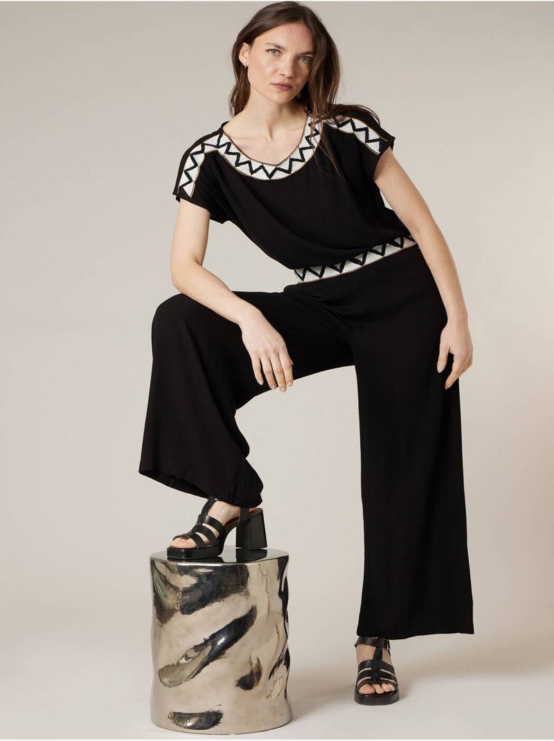 Blouse femme à broderies ethniques 'Deeluxe' - Noir