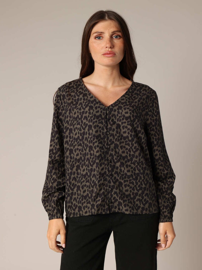 Blouse fluide à imprimé léopard et col en V 'Deeluxe' - Noir