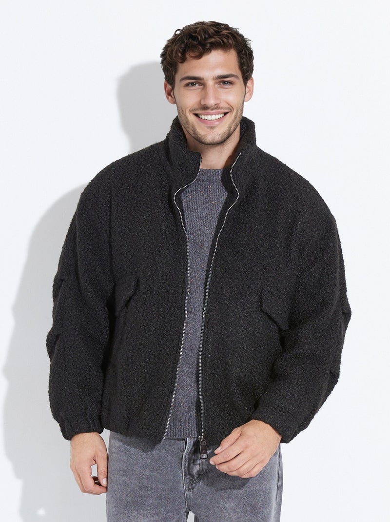 Blouson façon peau lainée, col montant - AFIBEL - Noir
