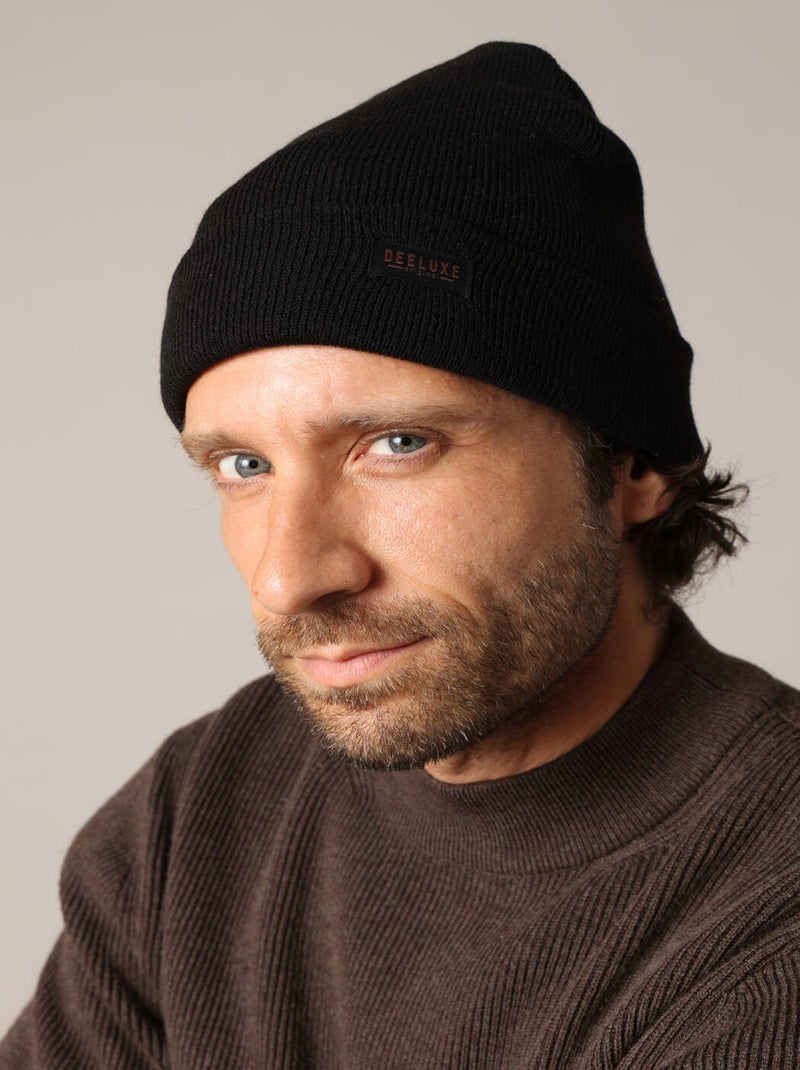 Bonnet côtelé homme à revers avec patch logo 'Deeluxe' - Noir