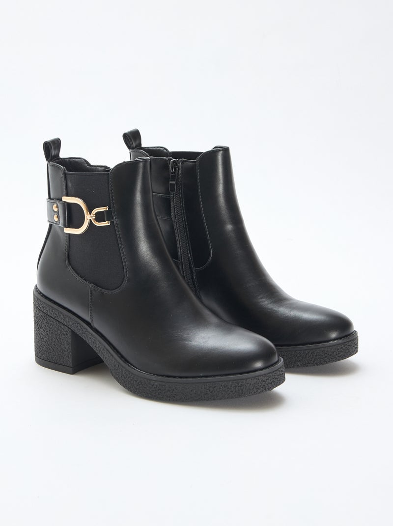 Boots modèle Chelsea avec brides à boucle dorées - Noir