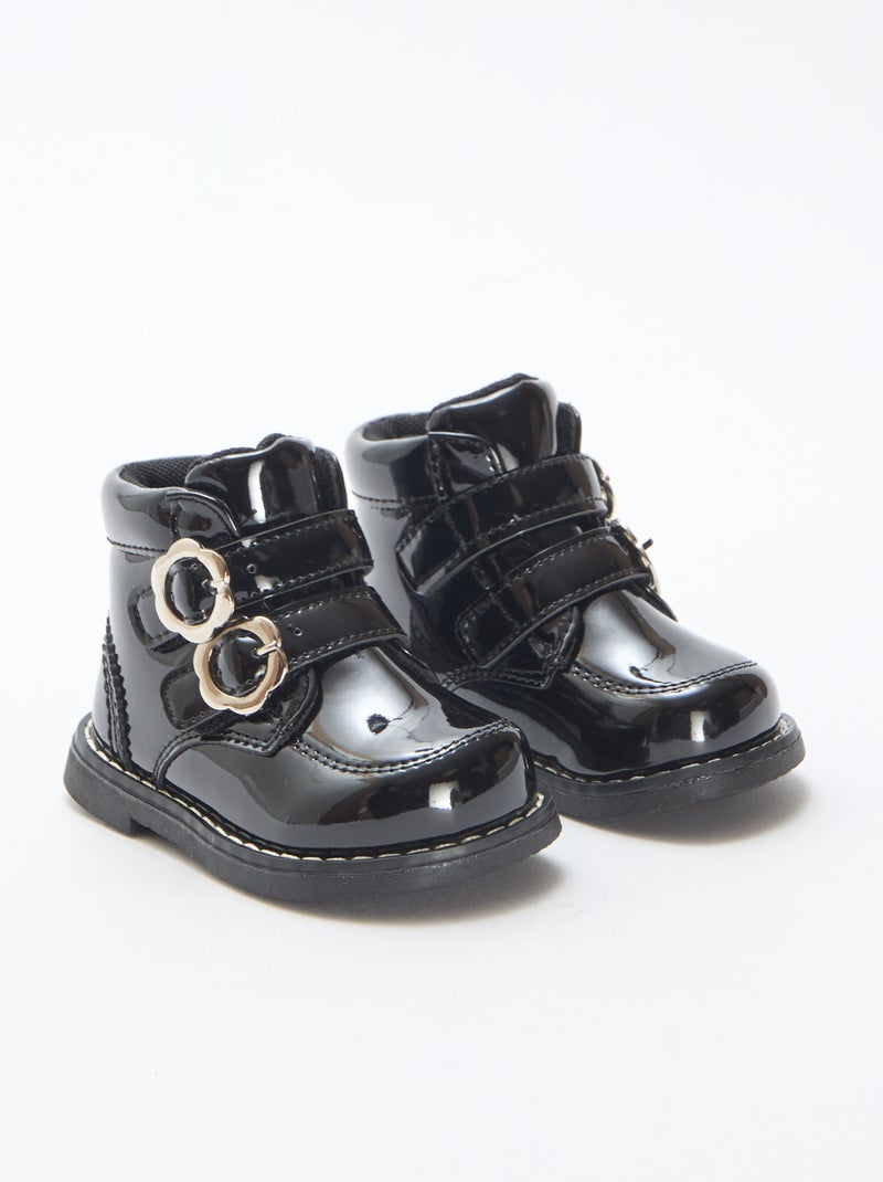 Boots vernies à scratchs - Noir