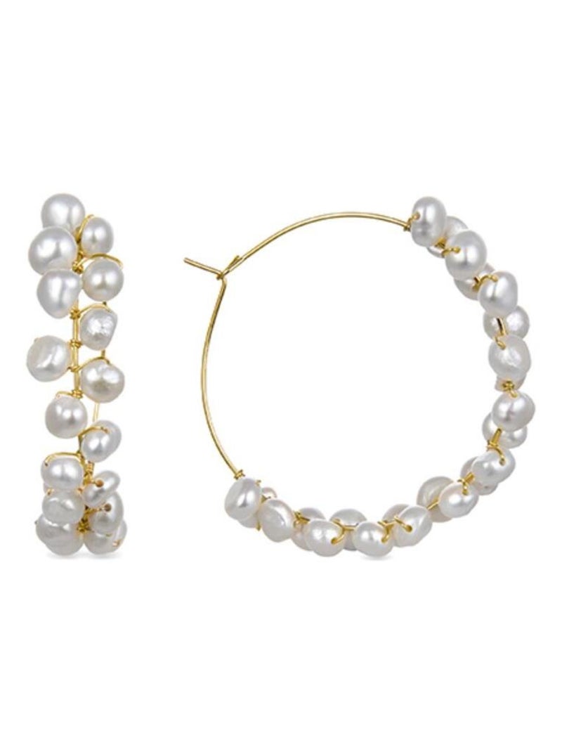 Boucles d'oreilles en perles blanches Luxenter finies plaqué or jaune 18K - Milba - Blanc