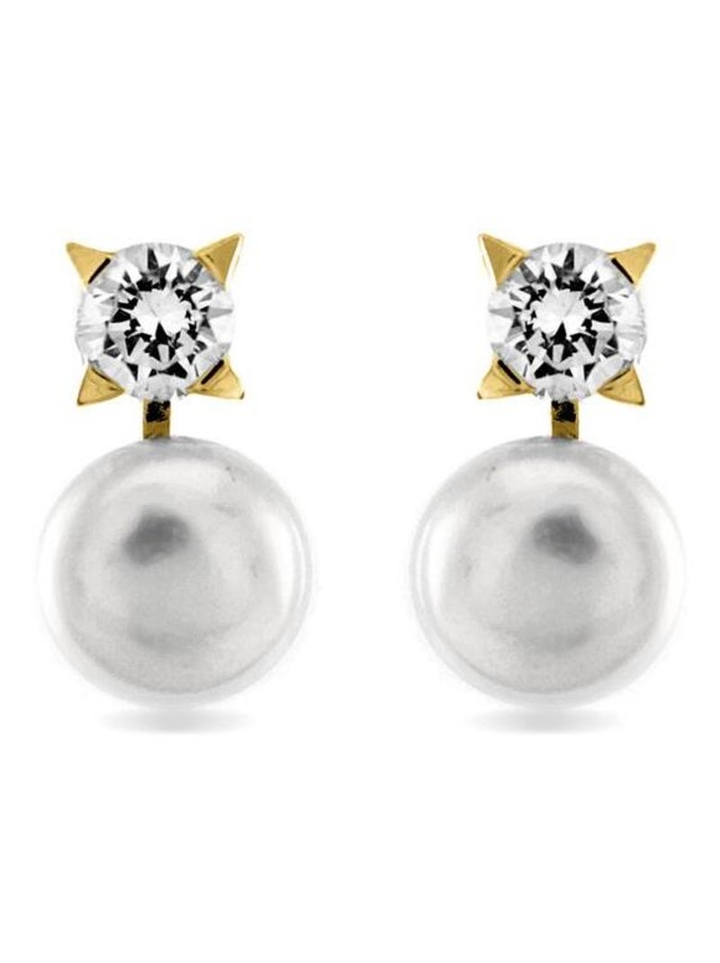 Boucles d'oreilles Luxenter en argent 925 avec perle blanche finie plaqué or jaune 18K - Essential - Blanc