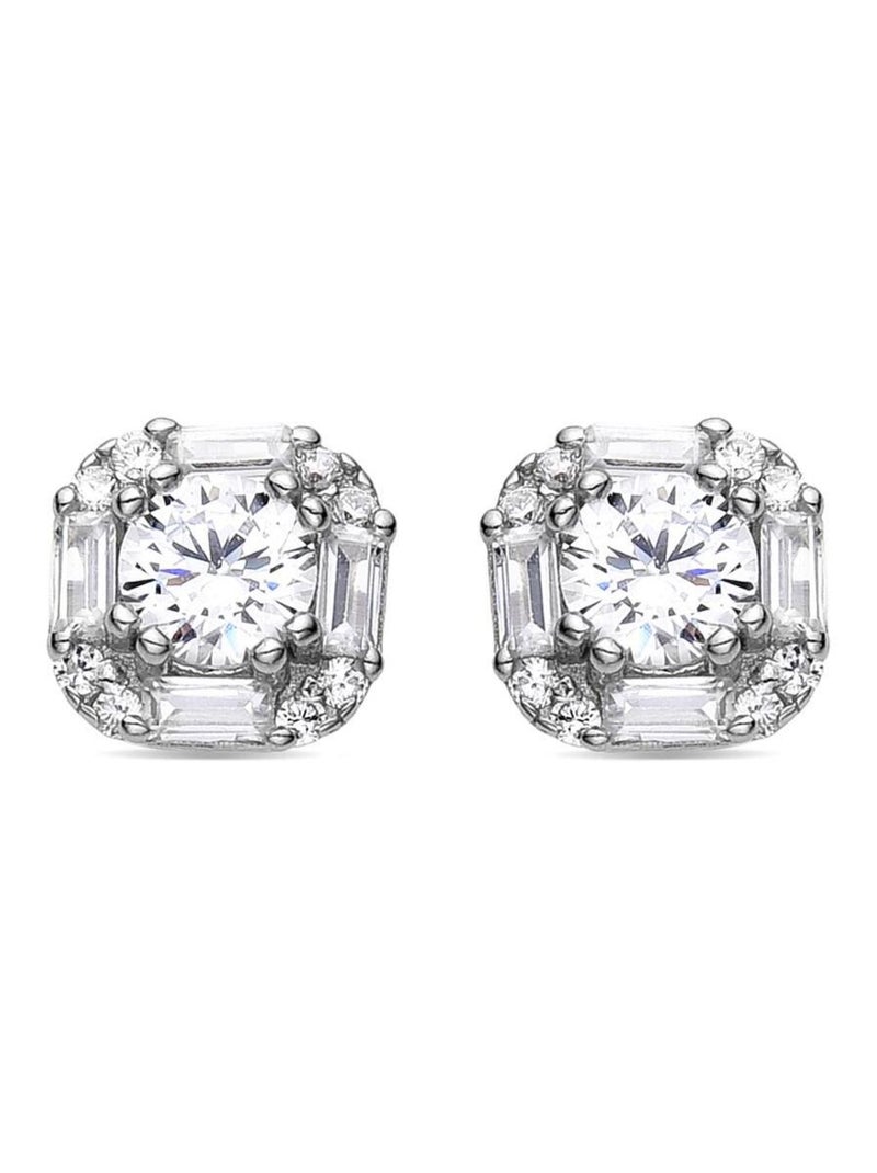 Boucles d'oreilles Luxenter en argent 925 avec zircon brillant rhodié - Dyadu - Blanc