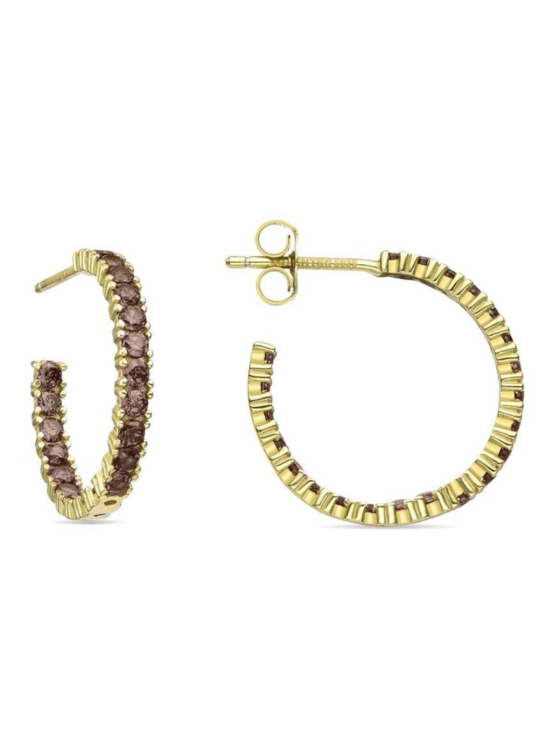 Boucles d'oreilles Luxenter en argent 925 avec zircon brun et finition plaqué or jaune 18K - Iotha - Marron