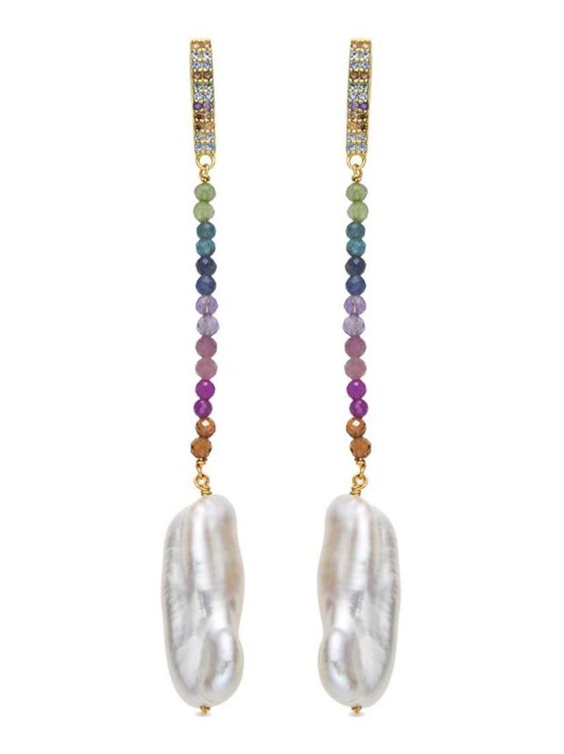Boucles d'oreilles Luxenter en argent 925 et perle blanche plaquée or jaune 18 carats - Dephia - Blanc
