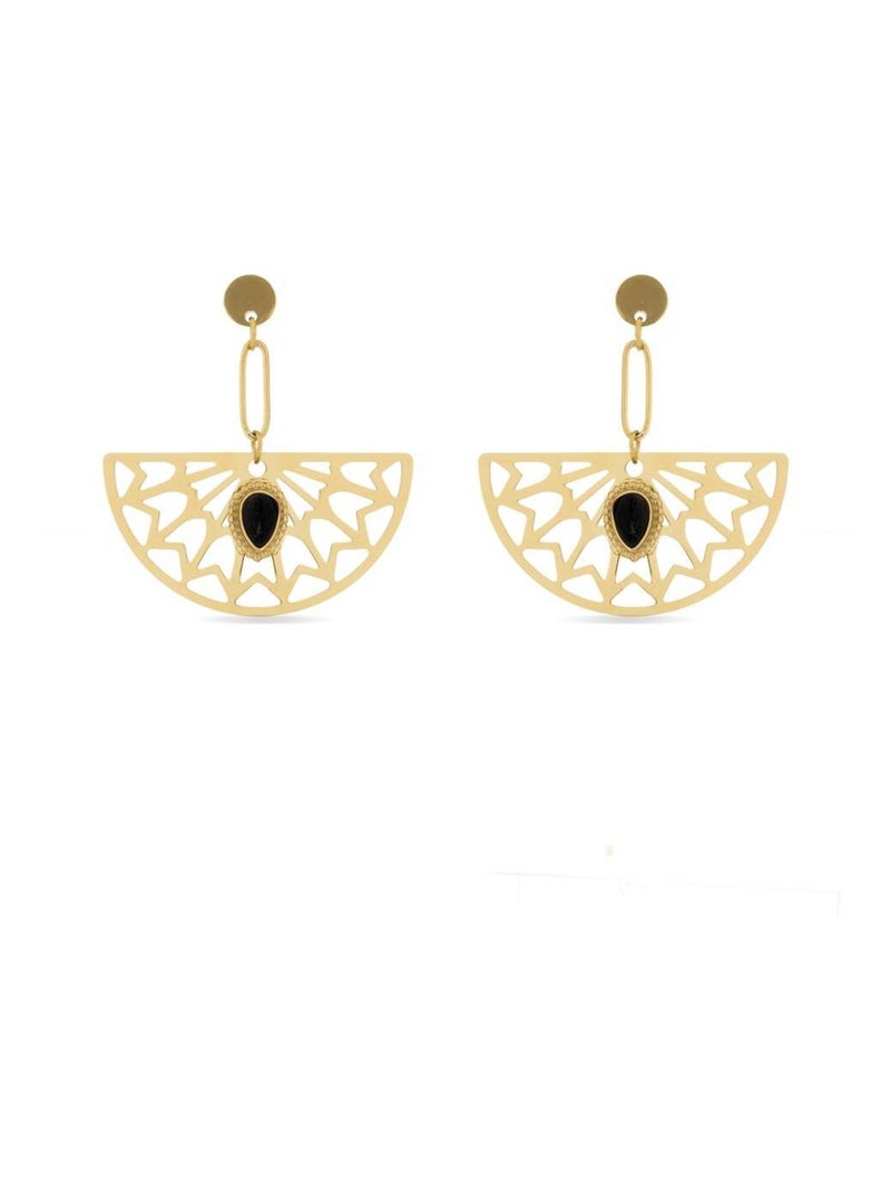 Boucles d'oreilles Luxenter Onyx finies plaqué or jaune 18K - Tawa - Noir