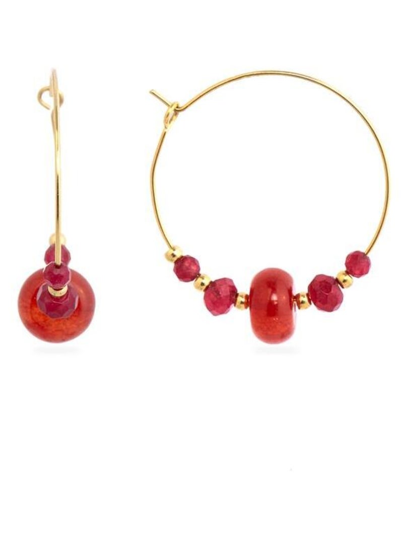 Boucles d'oreilles Luxenter plaqué or jaune 18 carats et Jade rouge - Rahay - Rouge