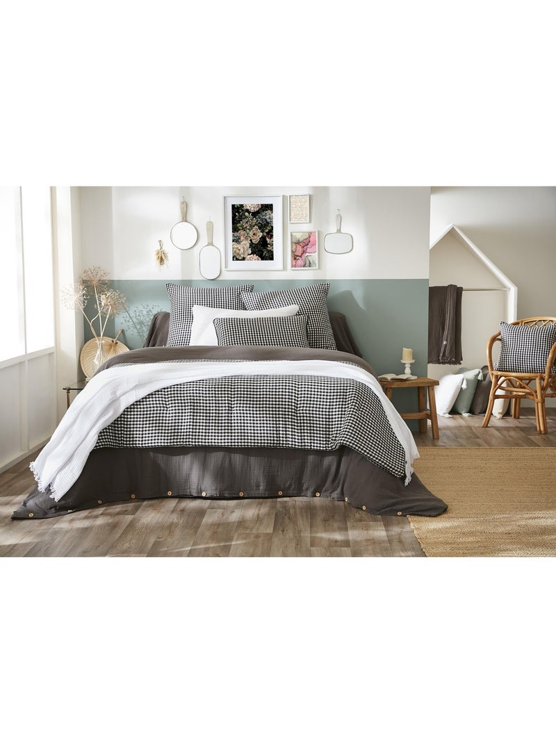 Bout de lit - Gaze de coton tissée - Carreaux Vichy - Vickie - Noir