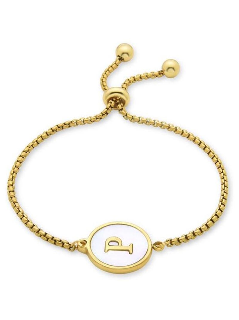 Bracelet Luxenter en nacre blanche finie plaqué or jaune 18K - Alphabet - Blanc
