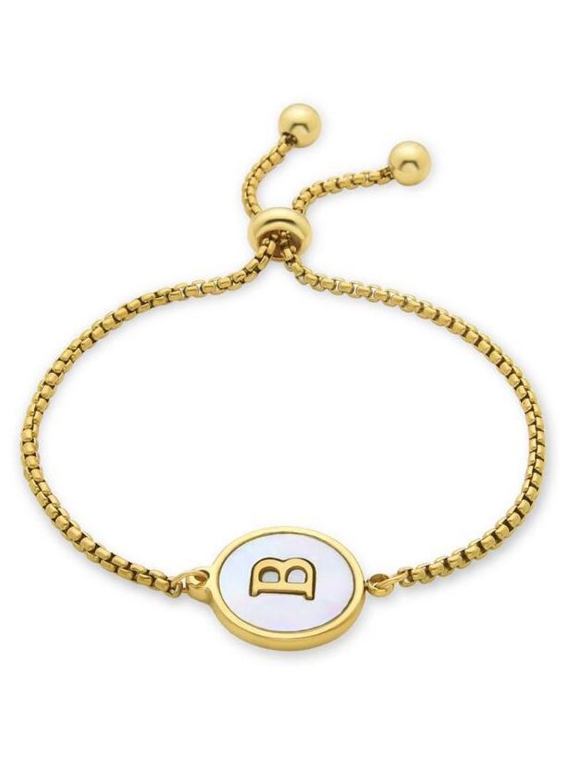 Bracelet Luxenter en nacre blanche finie plaqué or jaune 18K - Alphabet - Blanc