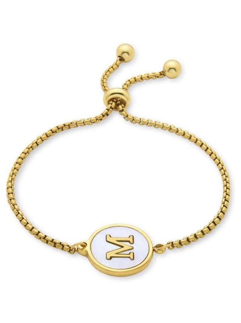 Bracelet Luxenter en nacre blanche finie plaqué or jaune 18K - Alphabet - Blanc