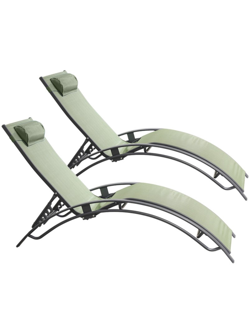 CALI Lot de 2 transats ajustables gris et kaki - Gris Kaki