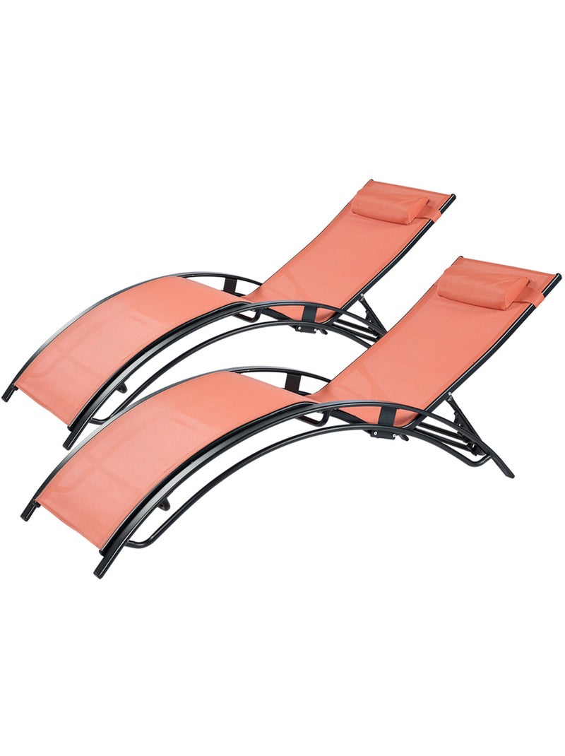 CALI Lot de 2 transats ajustables noir et terracota - Terracotta