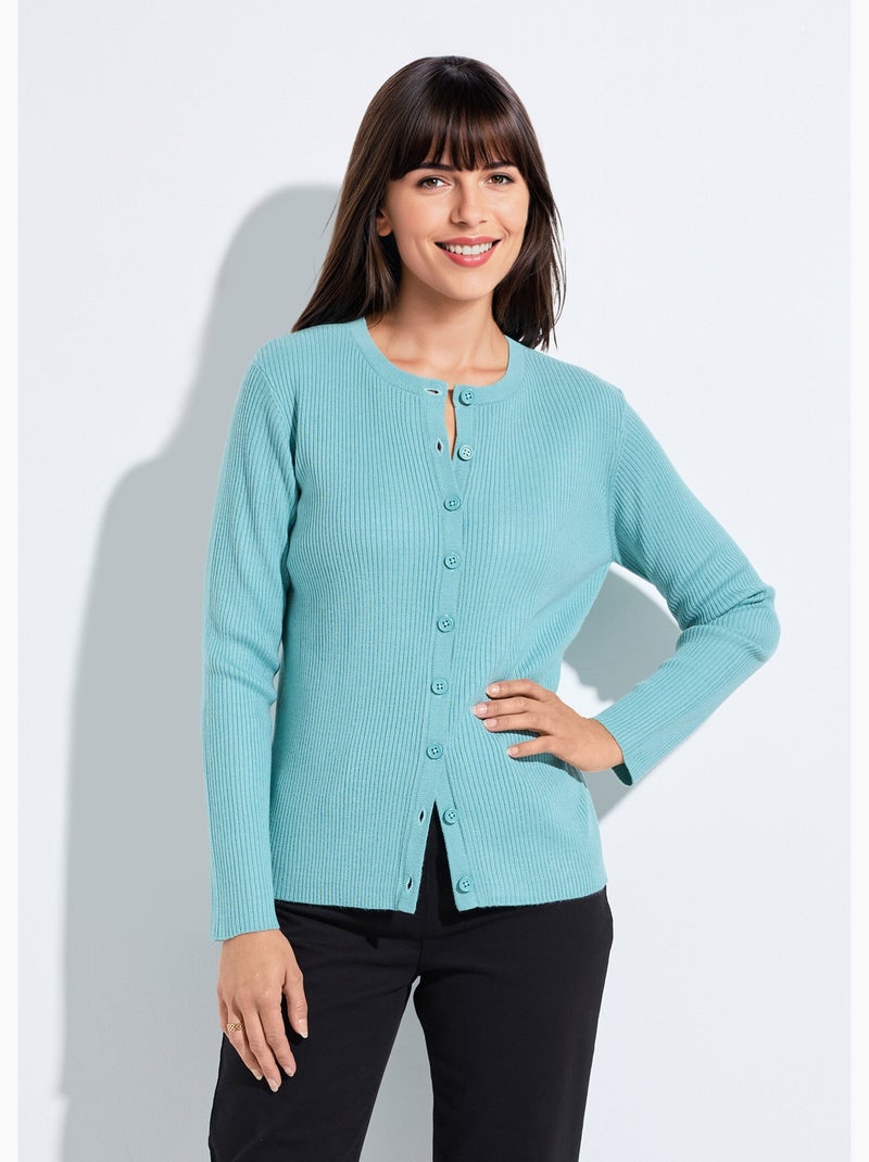 Cardigan boutonné maille côtelée unie - Bleu aqua