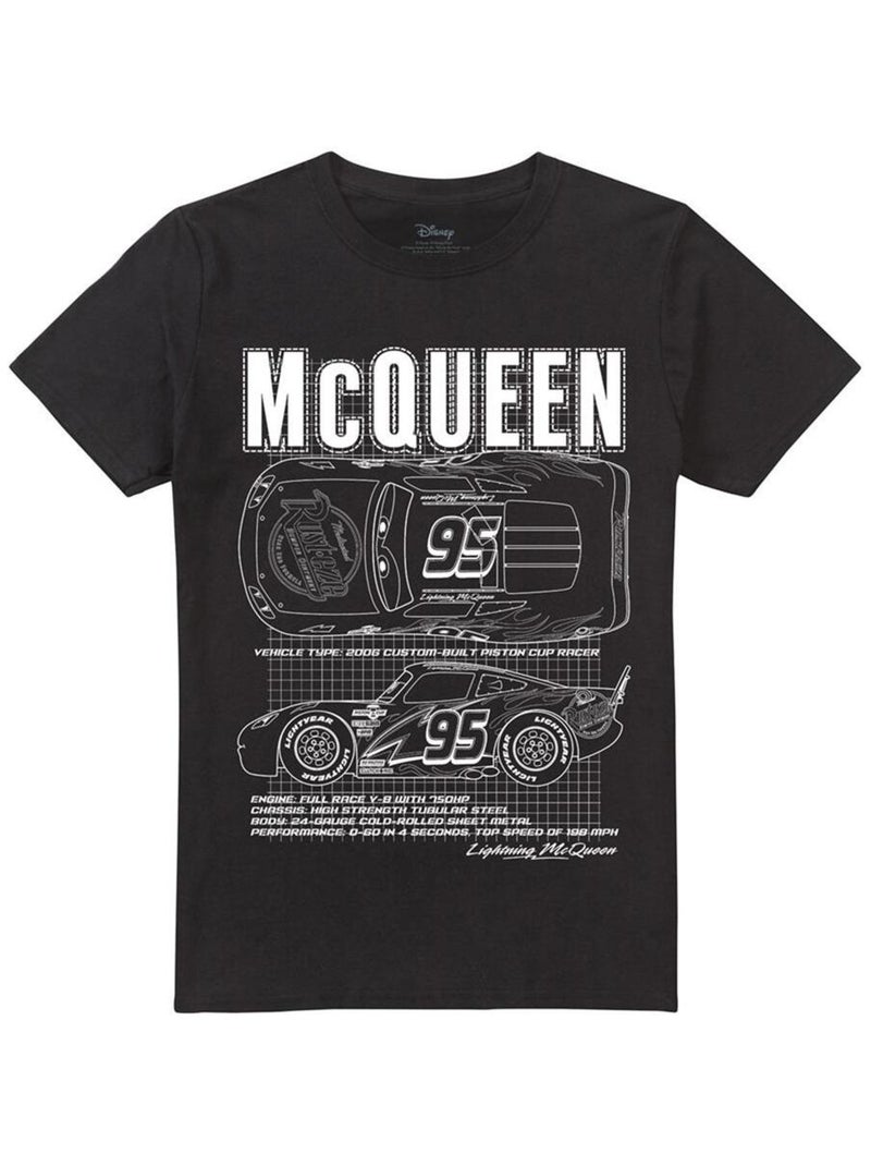 Cars - T-shirt motifs Flash McQueen et contours - Noir