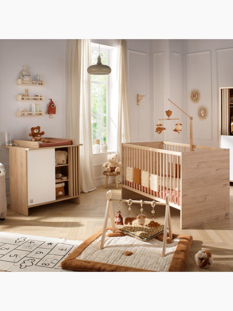 Chambre bébé, Lit évolutif et Commode à langer avec claustra - SAUTHON - Blanc Marron