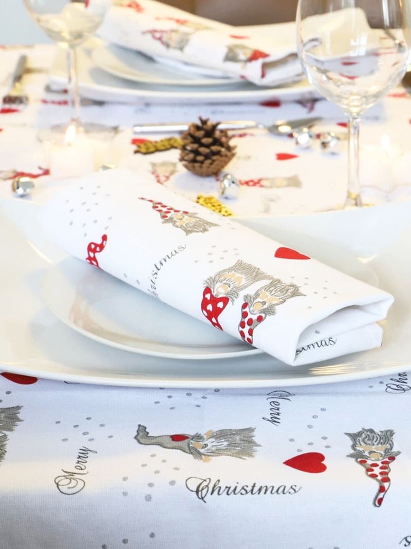 Chemin de table coton 190gr m² motifs LUTIN - Blanc