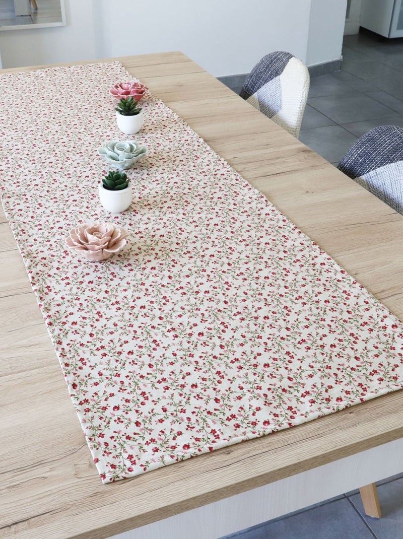 Chemin de table coton lin naturel FLORALIE - Rouge