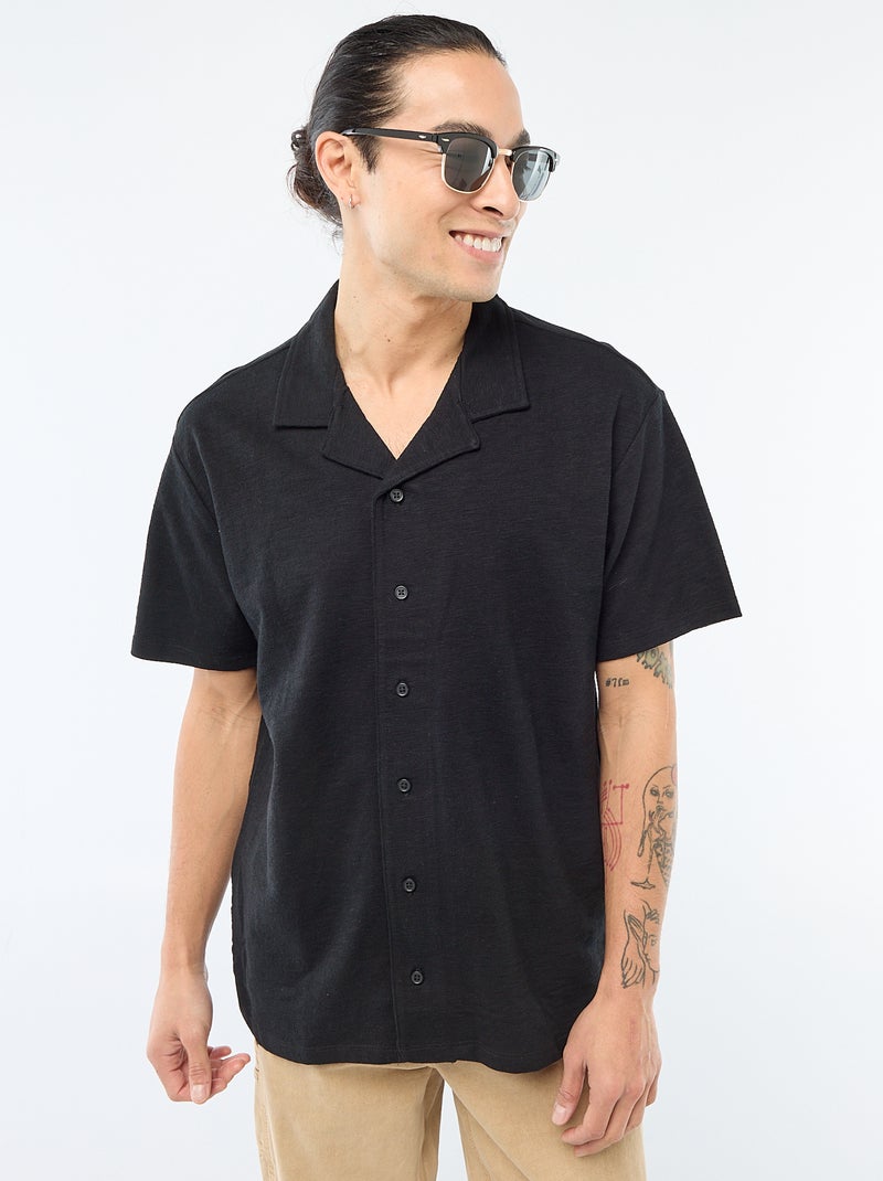 Chemise à manches courtes en maille - Noir