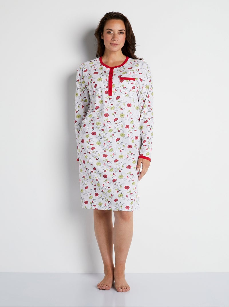 Chemise de nuit boutonnée coton imprimé mi longue - N/A