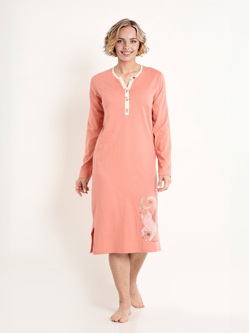 Chemise de nuit liquette mi-longue boutonnée coton - Terracotta