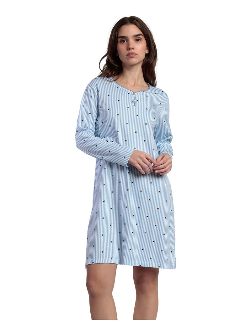 Chemise de nuit manches longues col rond Stripes And Stars - Bleu