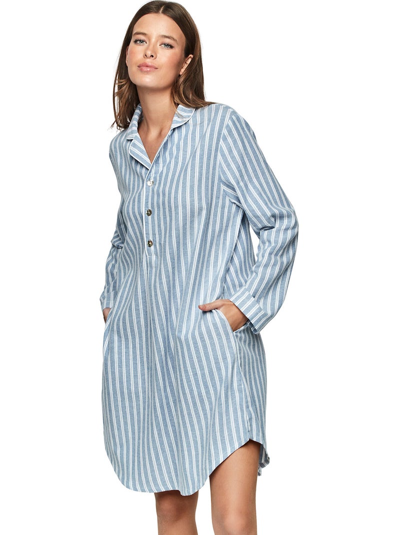 Chemise de nuit manches longues P105 OXFORD - Bleu