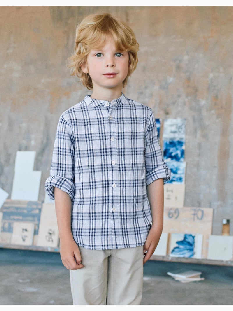 Chemise en coton à carreaux et manches retroussables B&S - Bleu foncé