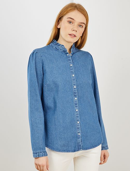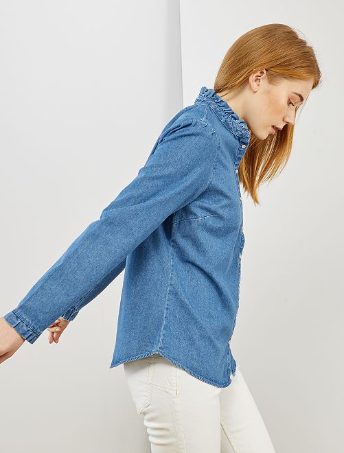 Chemise en jean à col volanté
