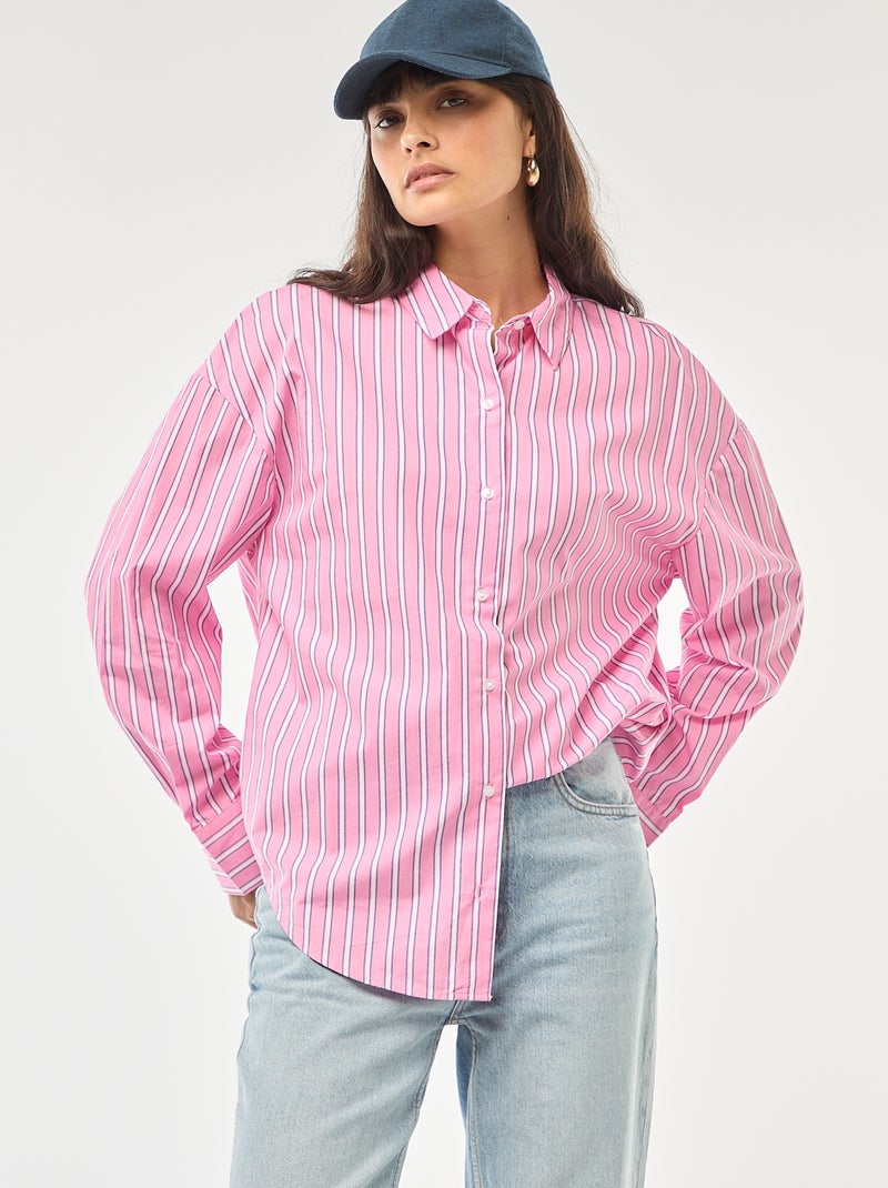 Chemise en popeline à manches longues - Rose
