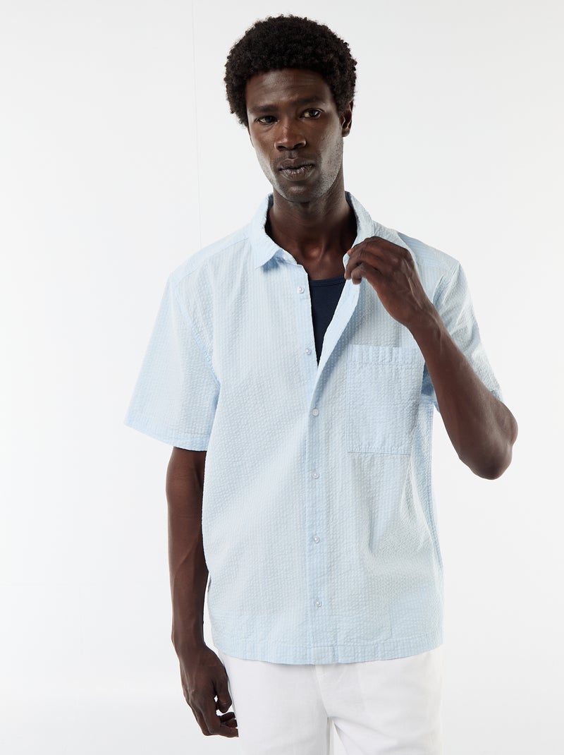 Chemise en seesucker à manches courtes - Bleu