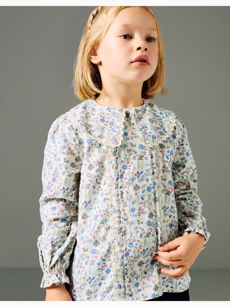 Chemisier en coton à motif floral et broderie B&S - Beige clair