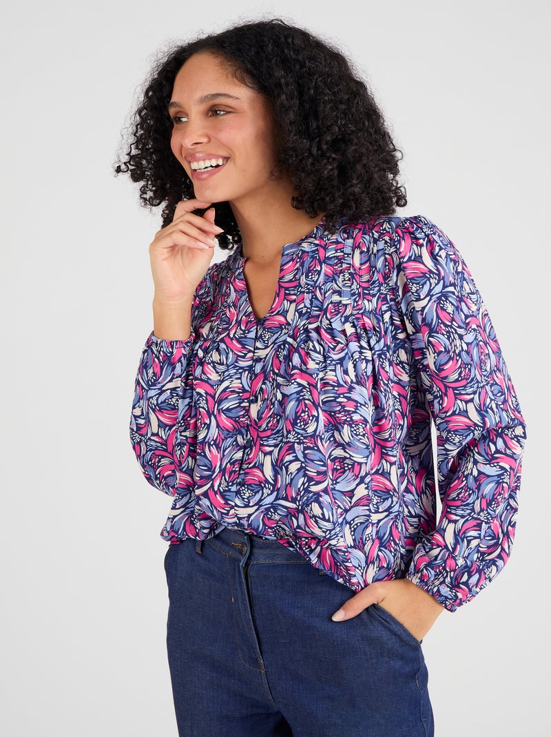 Chemisier imprimé pure viscose - Damart - Bleu marine