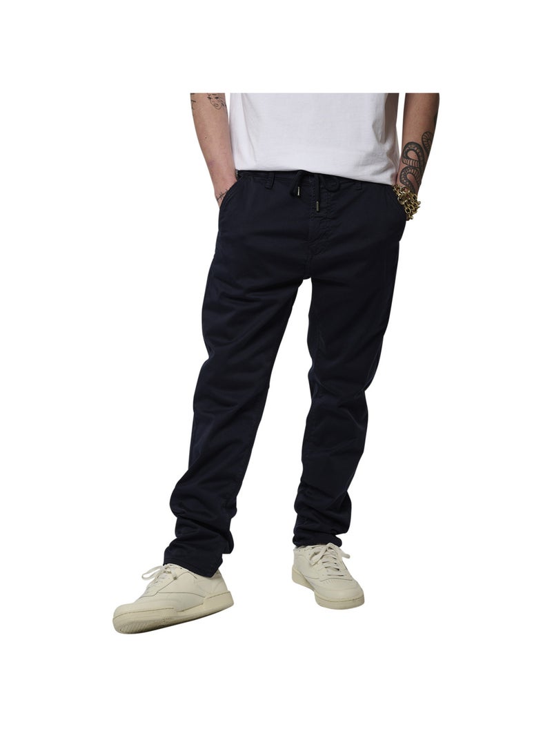 Chino en coton marine uni avec une coupe droite et des poches - Bleu marine