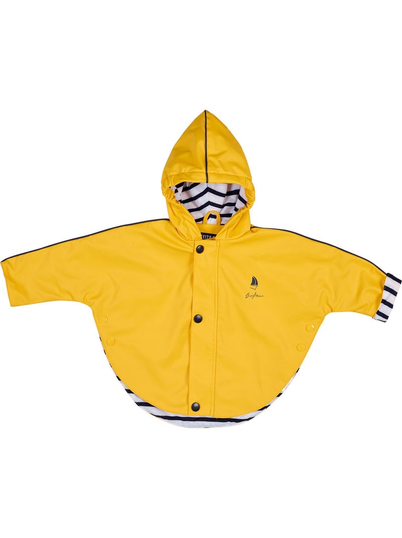 Ciré imperméable bébé 'Breizh Ocean' avec Capuche, Poncho Intérieur rayé - Jaune