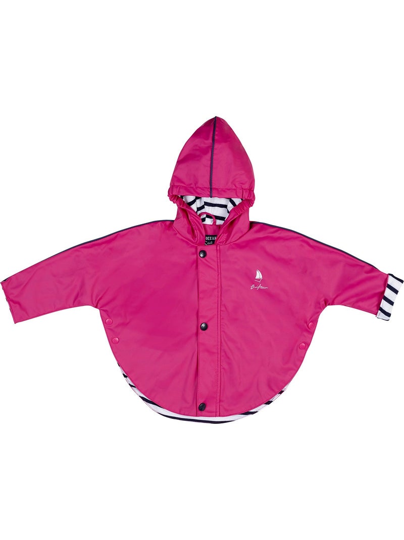 Ciré imperméable bébé 'Breizh Ocean' avec Capuche, Poncho Intérieur rayé - Rose fushia