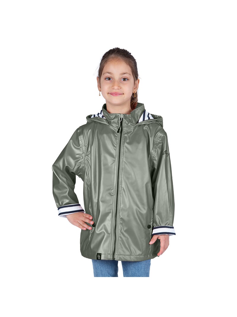 Ciré imperméable enfant 'Breizh Océan', intérieur jersey rayé - Veste Fille - Kaki Métal